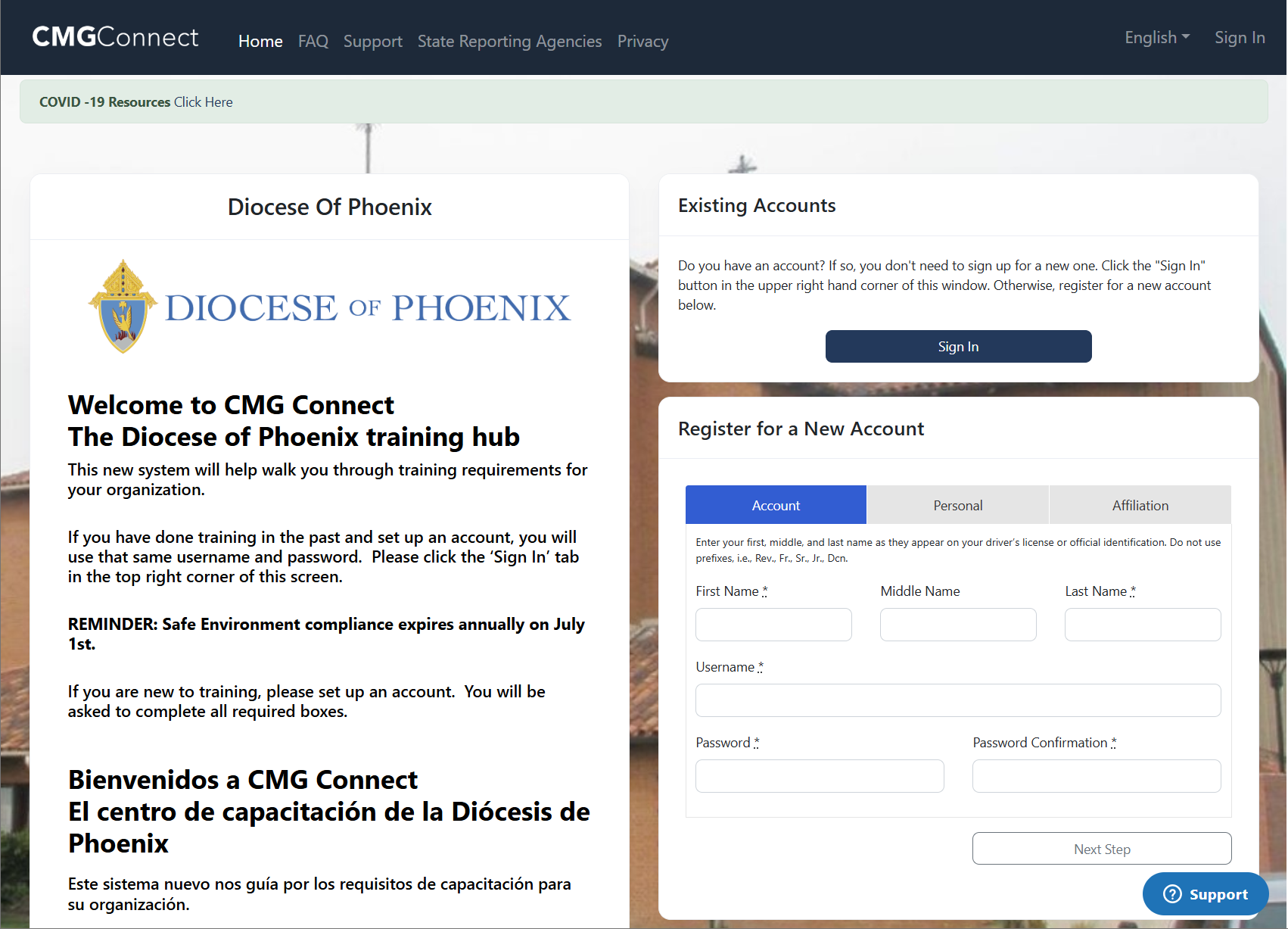 The Diocese of Phoenix requires all clergy, consecrated religious, deacons, lay employees, and volunteers to complete an annual Safe Environment Training. Please continue reading for instructions on completing your training: